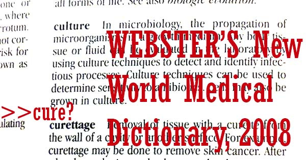 We can hardly fault Webster's, or Merck's, or Harrison's, or Lange's, or others for not providing a scientific definition of cure. The fault lies in the science, or the non-science, of today's medical bureaucracies, not in the authors of medical dictionaries.